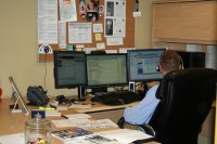 that this fellow has three computer screen going at the same time. I hope he is coordinated doing this. All the parts come into their main warehouse area. It appear near empty now, but we were told that soon it would be full.